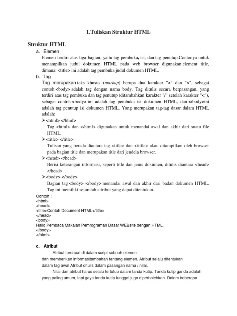 Dilansir dari teks dalam kajian struktur dan kebahasaan (2019), teks laporan hasil percobaan memiliki struktur sebagai berikut:. Tanpa menggunakan html, maka tidak akan tercipta sebauh website yang diinginkan. Di dalam teks eksplanasi ini biasanya mengandung ciri kaidah kebahasaan diantaranya sebagai berikut: Misalkan ini ch 4, artinya si 4 atom h mengisi 4 ruang atom c. Inilah struktur html dasar dan penjelasannya. Judul adalah nama dari percobaan yang dilakukan. Carilah teks laporan percobaan dr buku/internet. Oct 15, 2019 · 3 min read. Fokus pada hal umum (generic), bukan berfokus partisipan manusia (nonhuman participants). Pidato persuasif adalah jenis pidato yang bertujuan untuk menarik perhatian para pendengar, memengaruhi, serta bersifat mengajak atau membujuk para pendengar agar mereka menjadi yakin dan mau mengambil tindakan bahkan melakukan sesuai dengan tujuan pidato tersebut. Pernyataan pendapat, tanggapan, atau komentar atas suatu hal. Dari soal diketahui bahwa : Untuk lebih jelasnya, berikut ini contoh penulisan struktur dasar html: