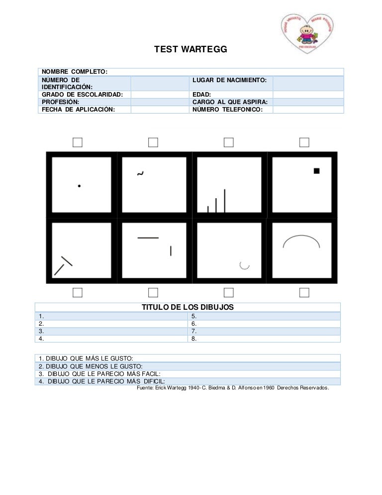 Es uno de los test más utilizados para evaluar la personalidad total de las personas. Tecnica diagnostica di wartegg (wzt) test dell'albero; ¿cuales son las respuestas correctas o las soluciones? Solitamente il grado di attendibilità e di validità di questi strumenti è stabilito attraverso tecniche di valutazione standardizzata ed è indicato nel manuale del test stesso. Nov 16, 2018 · el test de wartegg fue creado por erik wartegg en 1940 y posteriormente fue perfeccionado en 1960 por biedma y alfonso.